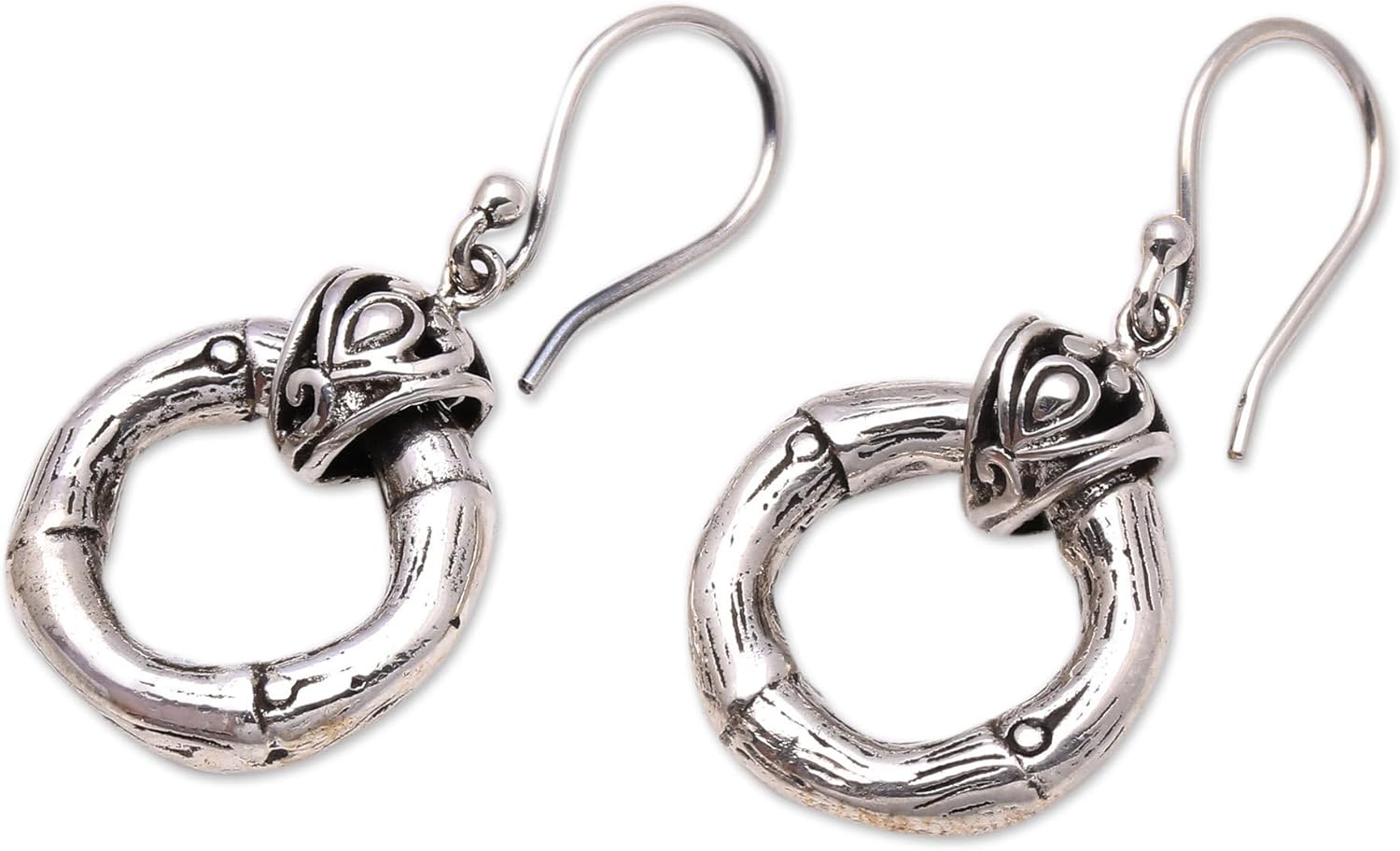 Novica works together with talented artists, artisans, and designers around the world to produce stunning, keepsake handmade treasures. Our mantra is to Spread Happiness, so rest assured - we’ll do everything we possibly can to ensure you’re a happy customer!About this item: Crafted from sterling silver, bamboo stalks form elegant wreaths. Rosalia Tarigan designs this pair of dangle earrings, crafted by Balinese artisans.About our Artist: 'My name is Rosalia Tarigan, and I am from Medan, North Sumatra. I met Ibu Indun in Bangali, a widow who lives in the area, and together we started a silver craft workshop. Our collection uses silver, which is beautiful and easy to clean, and gemstones, and combines traditional and modern styles.'...