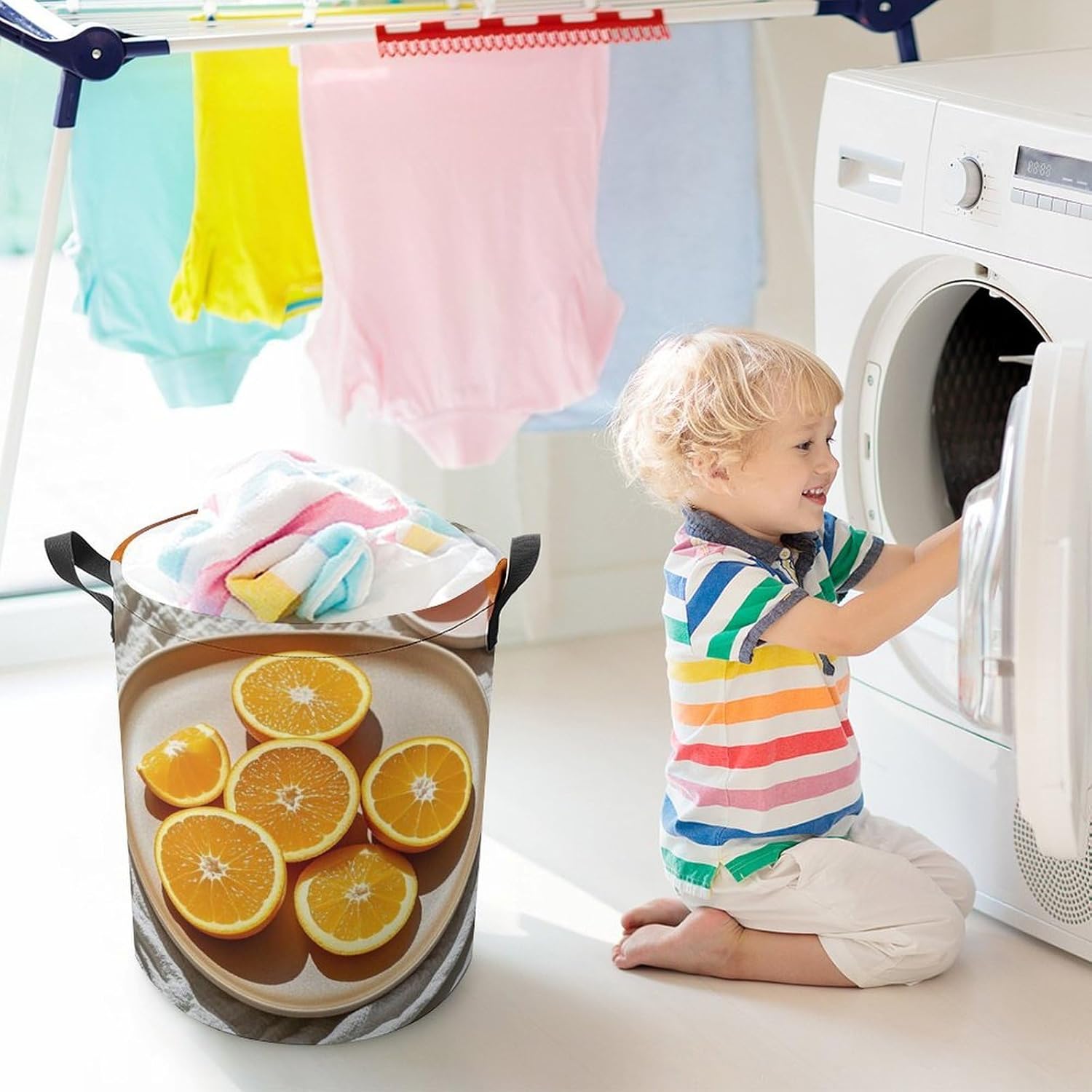 Tired of cluttered floors and messy storage spaces? This Cute Laundry Basket is here to transform your home organization game. Made from soft yet sturdy Oxford cloth, it combines a sleek look with functional design: the drawstring top keeps dust at bay, while the water-resistant interior protects your items from dampness.When you’re done, it folds down to a compact size, so it won’t take up precious space in your closet or storage cabinet.Why settle for a boring storage bin when you can have a Fashionable Clothes Hamper that elevates your space? Designed with both style and utility in mind, this hamper comes in a versatile 13.8” x 17.3” size, perfect for holding a full load of laundry or stowing away seasonal items. The dual side handles make it easy to carry from the bedroom to the laundry room, and the foldable tube structure means you can take it with you on road trips, hotel stays, or even to your vacation rental.Looking for a storage solution that stands out from the rest? Our Unique Clothes Hamper is the answer. Unlike generic baskets, this piece features a thoughtful design that prioritizes convenience: it folds flat in seconds, comes with its own carrying bag for travel, and works in every room of the house. Use it in the bathroom for towels, in the living room for blankets, or in the hallway for shoes—its multifunctional design adapts to your lifestyle.