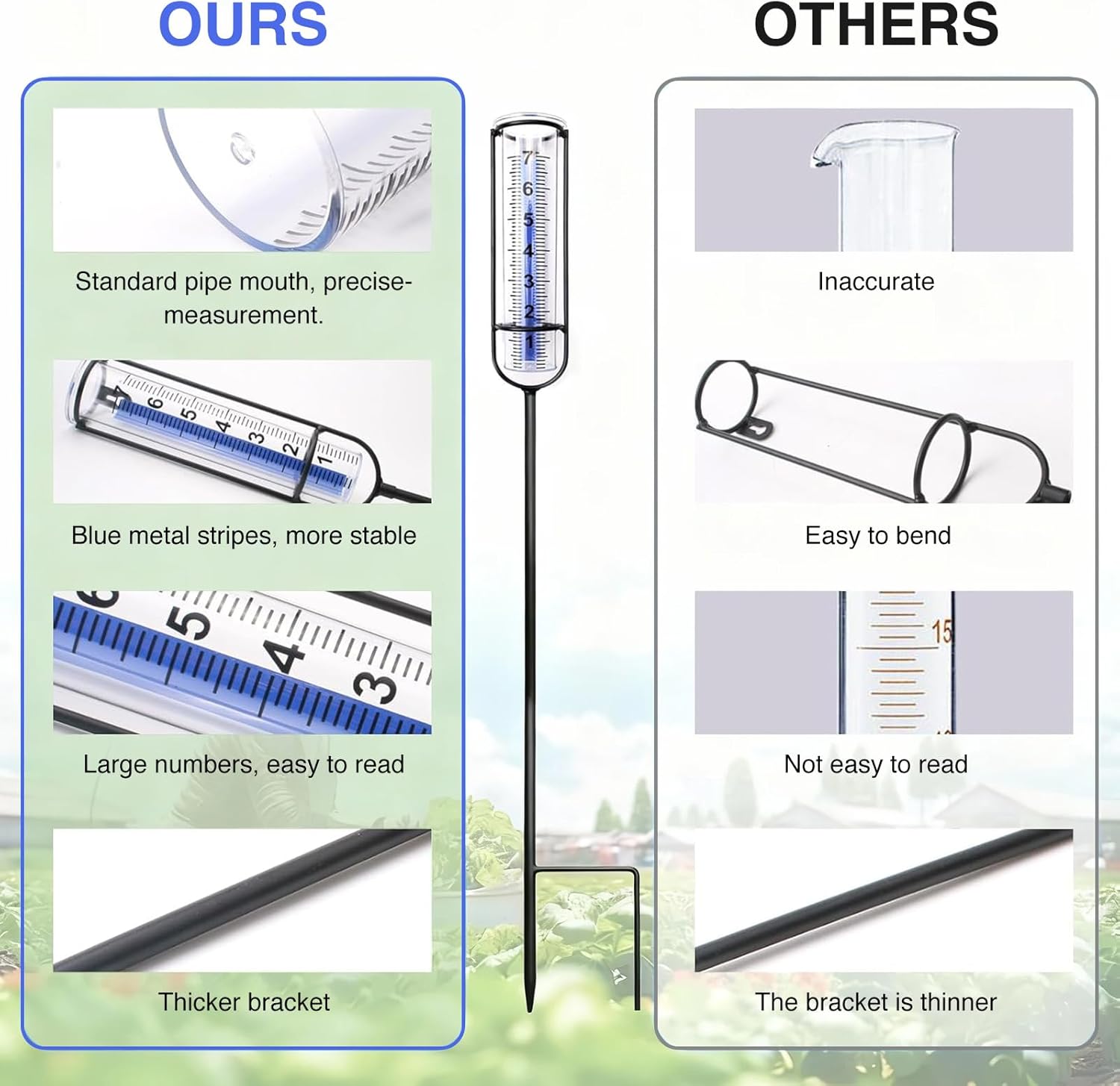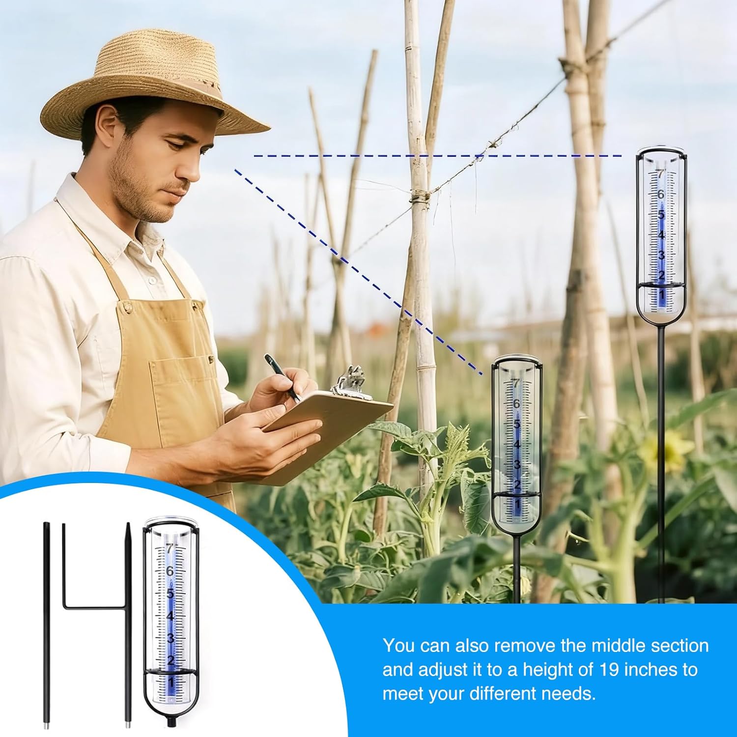 Keep track of rainfall with confidence using this upgraded outdoor rain gauge, designed for accuracy, durability, and ease of use.Featuring a thickened transparent measuring tube, this rain gauge provides clear visibility and precise rainfall measurements. The large, easy-to-read scale allows you to check water levels quickly without guesswork.The freeze-proof and weather-resistant construction helps protect the gauge from cracking or damage during colder seasons, making it suitable for long-term outdoor placement. A heavy-duty frame and stake ensure excellent stability in various weather conditions.With its adjustable height and detachable design, this rain gauge can be easily customized for different outdoor spaces and conveniently removed for cleaning or storage. Whether placed in a lawn, garden, yard, or flower bed, it’s a practical tool for monitoring rainfall and improving garden care.Package Includes: 1 × Outdoor Rain Gauge Adjustable Stake Detachable Measuring Tube