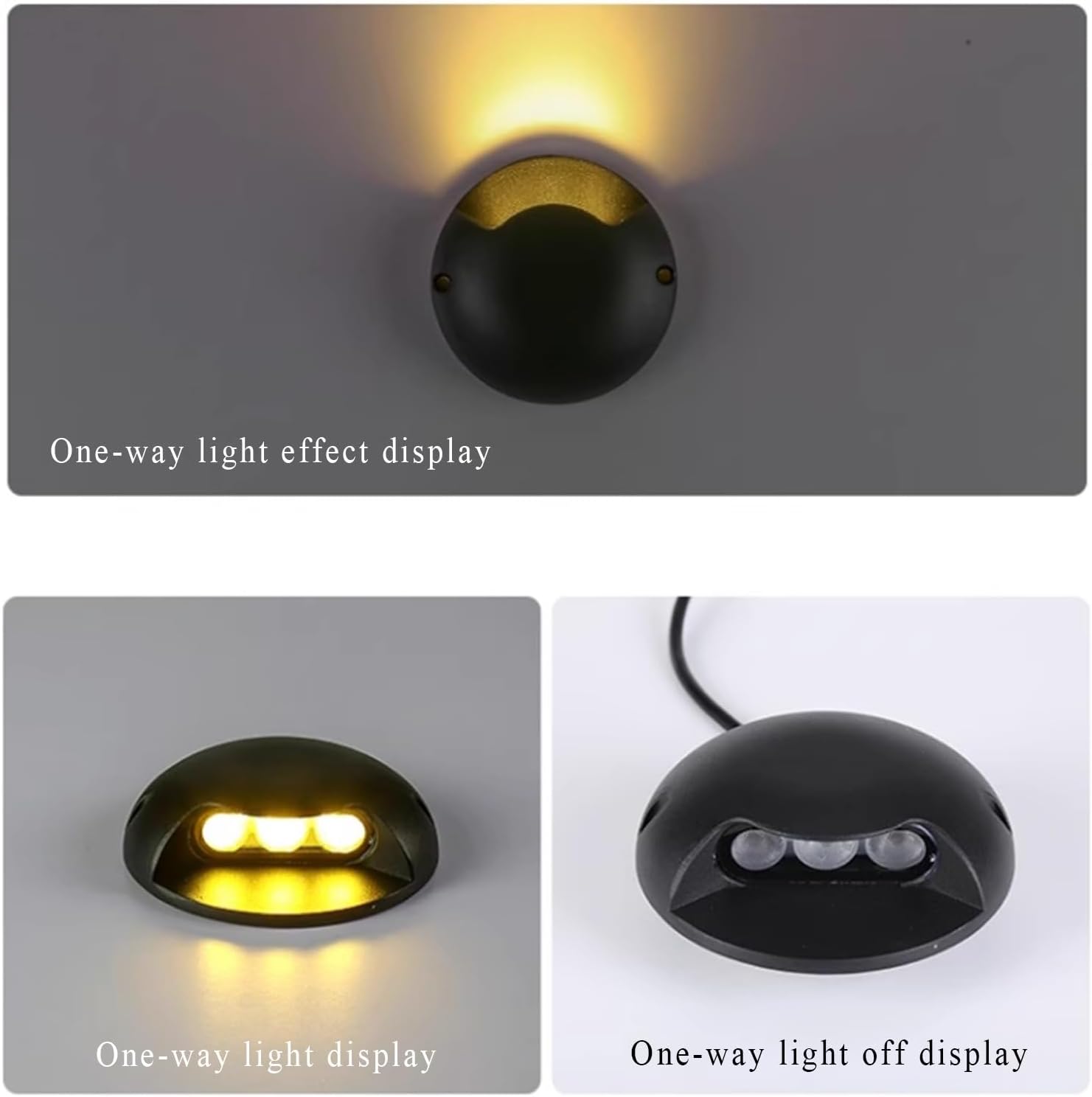 In-Ground LightsProduct name: Outdoor Step Lights/ Round Landscape LampSpecificationsLuminous surface: 1 side light transmissionProtection level: IP66 waterproofMaterial: Aluminum + glassInput voltage: AC85-110VPower: 2W, 3W, 4WInstallation method: Surface installation, no need to open holesLuminous color: pure white, warm light, red light, blue light, green light, yellow lightScope of application: villas, courtyards, lawns, landscapes, park, etc.Product details1. LED landscape light can operate normally under extreme temperature conditions and can also provide better performance in humid environments2. The underground lamp housing is made of die-cast aluminum, sandblasted, fast heat dissipation, waterproof, rust-free, very suitable for outdoor useDelivery content:1* LED Pathway Lights