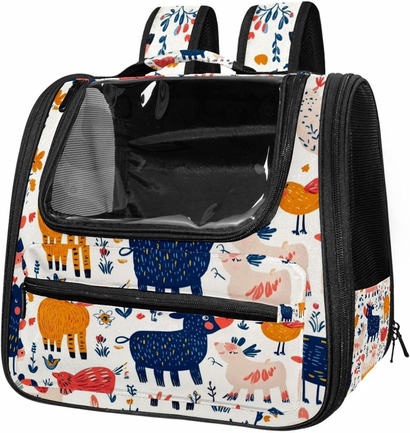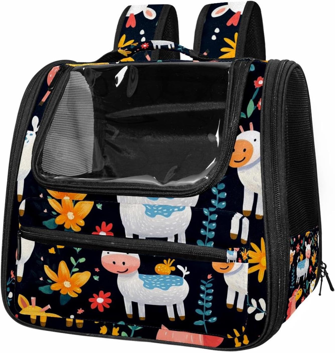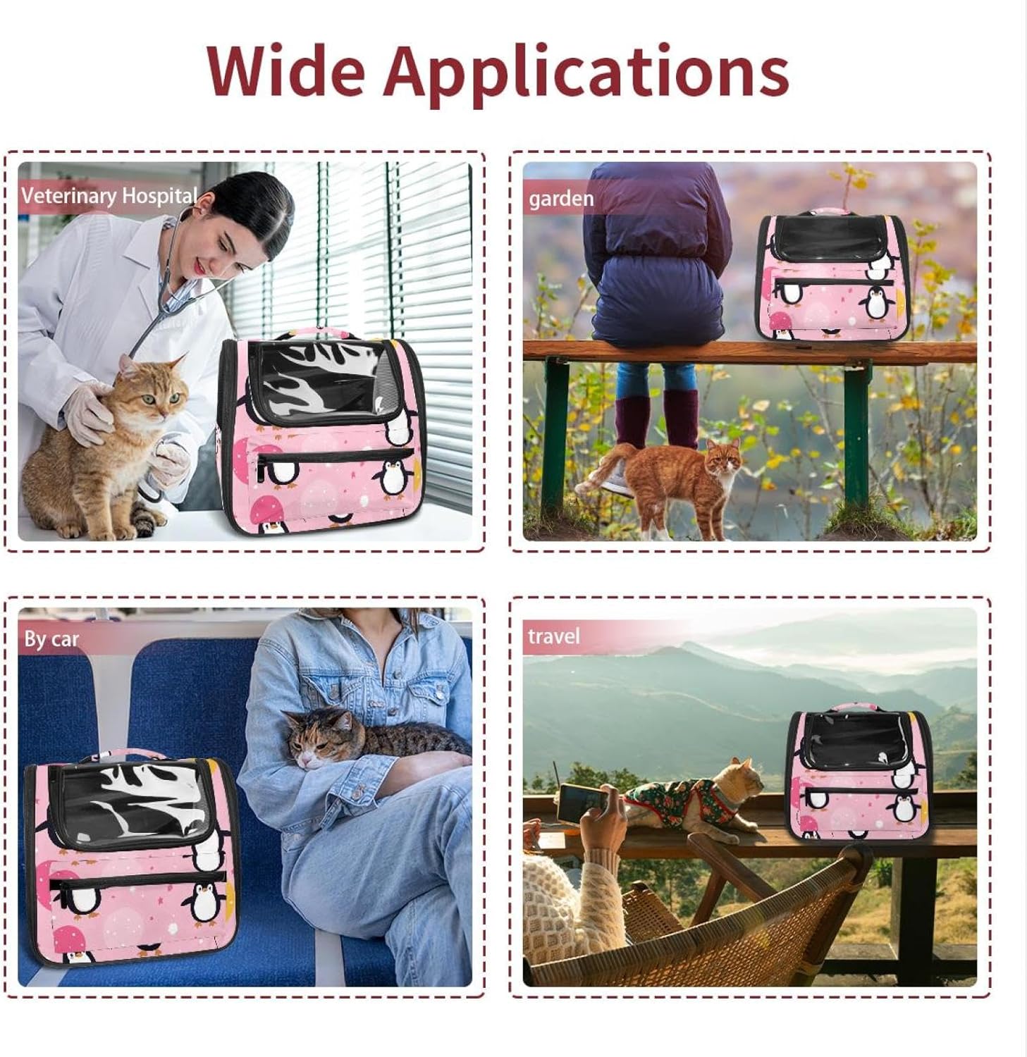 Well made: Cat Backpack Carrier is made from 900D oxford fabric, pp webbing, velvet, nylon, which is very sturdy, environmentally friendly and breathable. Not easily scratched by pet’s claws, pet backpack carrier is SAFETY & ANTI-SCRATCH. The back padding will give you a comfortable and breathable experience. Ventilated Backpack: With a breathable window in the front, this pet backpack allows cats to enjoy the sun without feeling stuffy. There are two side pockets and one big front pocket, and you can take foods or toy for your kitten pet. It is big enough for cat to turn around, and there are side pockets and hook holes, you will enjoy the greatest convenience when taking your cat out. Perfect size: Cat carrier is 15.75x9.84x13.78in/40x25x35cm. Fits most small/medium sized cat, dog, and pet. Quality fleece bed provide a comfortable place for your pet. Lightweight and easy to carry to all places. Built-in harnesses keep your naughty friends from escaping. Removable cosy mat for easier cleaning and let your pet enjoy it inside. Easy to carry: The adjustable shoulder strap of pet carrier bag help you hands-free carrying and makes it the most safe and convenient pet carrier bag for your travel. Seat belt design provide pets with safety protection throughout the trip. Pad protection keep your pets comfortable during travel. Unique Design: Innovative inside graphic design gives you a stereoscopic 3D visual experience. You also send us the photos you interest to make your unique dog or cat carrier. Pet bag is also a amazing gift for pet lover.
