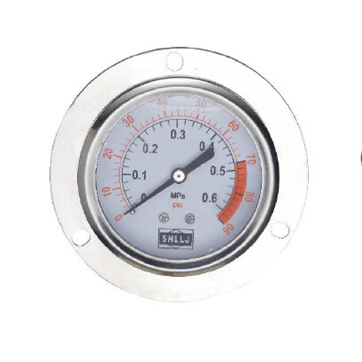 Pressure Gauge AccessoriesMeasure range:0.4MPA,0.6MPA,0.7MPA,1MPA,1.6MPA,2MPA,2.5MPA,3MPASpecifications Model: YN-60ZT pressure gaugeDial diameter: 60mmConnector size: PT1/4" inch threadMeasuring range: 0.4MPA,0.6MPA,0.7MPA,1MPA,1.6MPA,2MPA,2.5MPA,3MPAMounting: lowerAccuracy: 2.5Material: Stainless steel shell, movement brass, brass fittings, internal oil-filledColor: silver metallic body, chrome platingEnvironmental conditions: -5 ~ 55 , relative humidity less than 85%Temperature: Temperature deviation from 20 ± 5 , not more than 0.4% / 10 Weight: 0.25KG