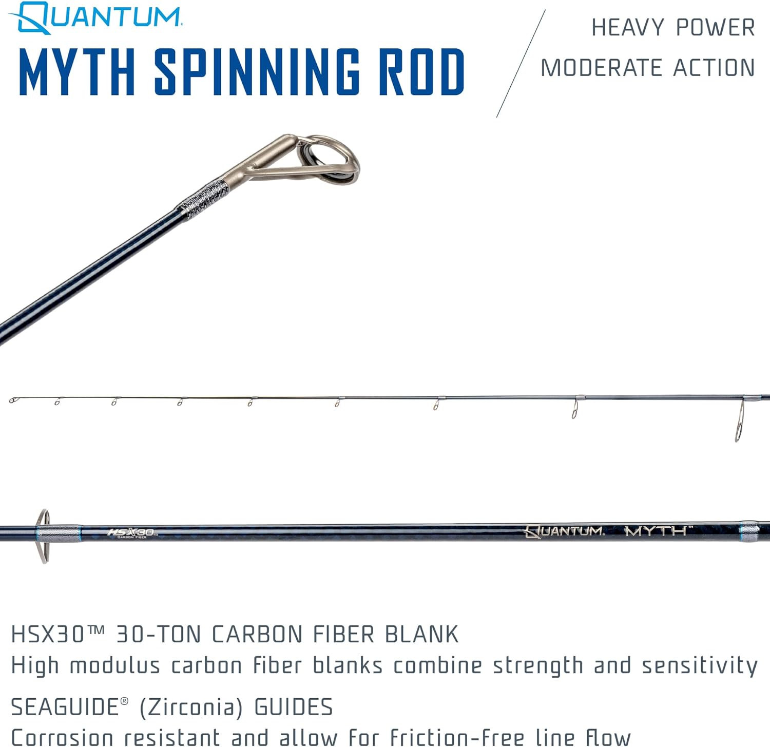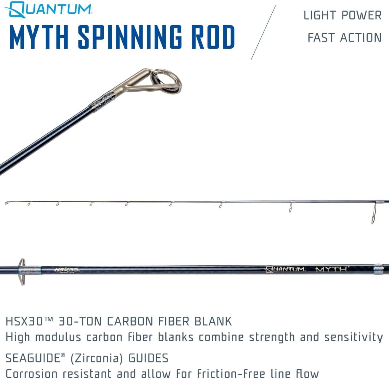 | Model Name | Quantum Myth Spinning Fishing Rod, HXS30 Graphite Blank, Seaguide Line Guides, Fuji DPS Reel Seat, Cork Handle, Gray/Blue |