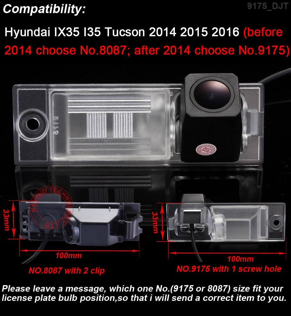 Dear customer,Please must check the camera size and appearance before place a order, see if can fit your car license plate lamp place size and appearance! Because the same car model in different countries may have some difference,please check the camera size and compare the installation of your car carefully to avoid mistake. This product could fit for all below models as expected:For Hyundai Tucson/IX 35/Tucson/Tucson IX35/Tucson IX/TL MK3 2004-2017- Image sensor: 1/3 inch Color CCD- Viewing angle: 170 degrees- TV system: NTSC standard and if need PAL, please leave a message- Effective pixels: 1280*720 Pixels- Resolution: 1000 TV lines- Power supply: DC 12V- Waterproof: IP67- Working temperature: -40~ 70℃/ -40~ 158℉Package Contents1 x Car Rear view Camera1 x Power Cable (1.5m/4.9ft) 1 x AV Cable (6m/19ft) 1 x User Manual