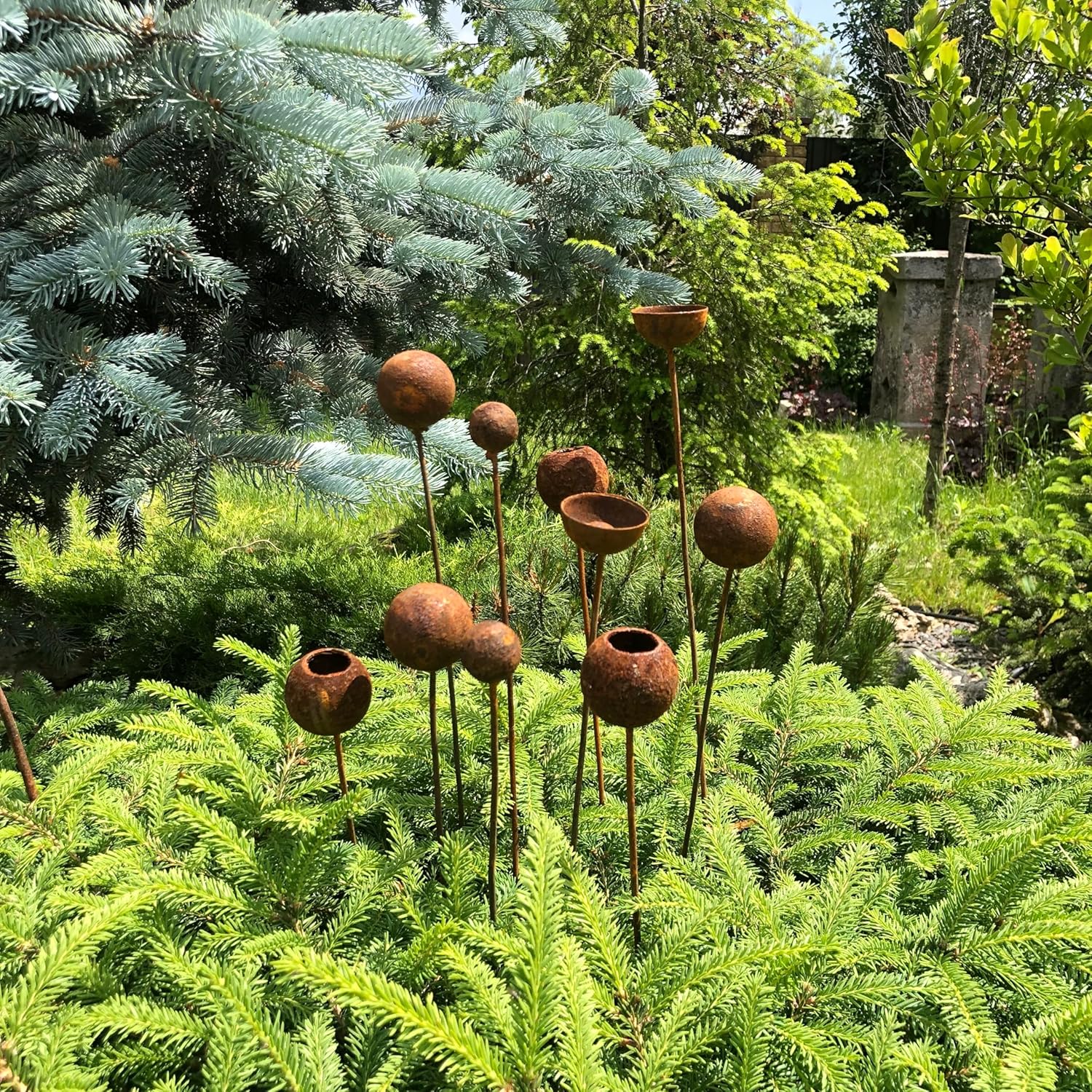 This Rustic metal flowers set of 10 will place decorative accent in the garden compositions and landscape, create an atmosphere of romance and coziness in your home. This rusty metal art could be used as decoration at your home, in your garden, backyard, terrace or entrance to your home. This yard decor made from natural metal and it covered with a natural rust. This rusty garden decor can be used all year round, it is not afraid of precipitation, direct sunlight, etc. Elevate outdoor spaces with our exquisite garden decor, an ideal gift for passionate garden lovers. Whether it's a birthday, anniversary, housewarming or any special occasion, this unique and beautifully crafted addition will bring joy to their green haven.
