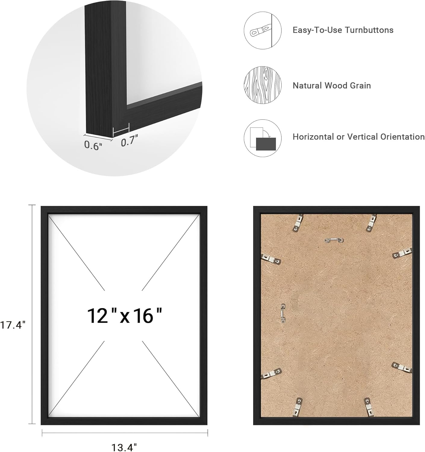 | Size | 12" x 16" x 4 Black Frame |