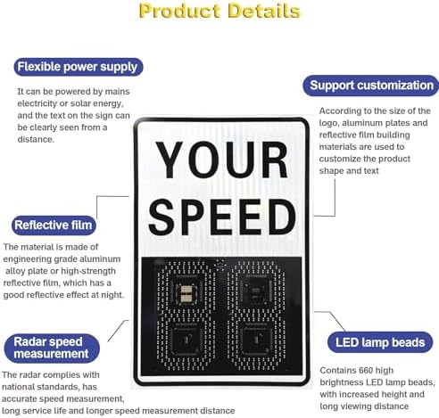 Introducing our Solar Radar Speed Meter, a smart solution for effective speed measurement and monitoring. Designed to enhance traffic safety, this device features real-time monitoring capabilities, allowing you to keep an eye on speeding vehicles around the clock. With its robust aluminum shell, this speed meter is built to withstand harsh weather conditions, ensuring durability with its anti-corrosion, waterproof, and sun-proof properties. The Solar Radar Speed Meter utilizes a super reflective film, providing high brightness reflection at night for improved visibility. Its dual-color lamp beads—red and green—not only offer high brightness but also low energy consumption, making it an eco-friendly choice. Installation is a breeze with the U-shaped hoop, compatible with standard 76/89 mounts, and customizable options are available upon request. Key specifications include an impressive visual distance of over 500 meters, a waterproof rating of IP65, and a wide operational temperature range from -40℃ to 60℃. With a service life exceeding 100,000 hours and a speed range of 1 to 99 km/h, this speed meter is designed for long-term use. The horizontal measuring angle of 37 degrees and vertical angle of 13.6 degrees ensure comprehensive lane coverage. In the package, you will find everything you need: one speed limit sign, a solar panel, mounting accessories, and a remote control for easy speedometer settings. For optimal performance, install the sign in a location free from shading to maximize sunlight exposure. Before installation, ensure that the LED lamp functions properly by simulating night conditions. Additionally, calibrate the solar panel direction to capture the most sunlight throughout the day. Elevate your traffic management strategy with our Solar Radar Speed Meter, a reliable and efficient tool designed to promote safe driving and enhance community safety.