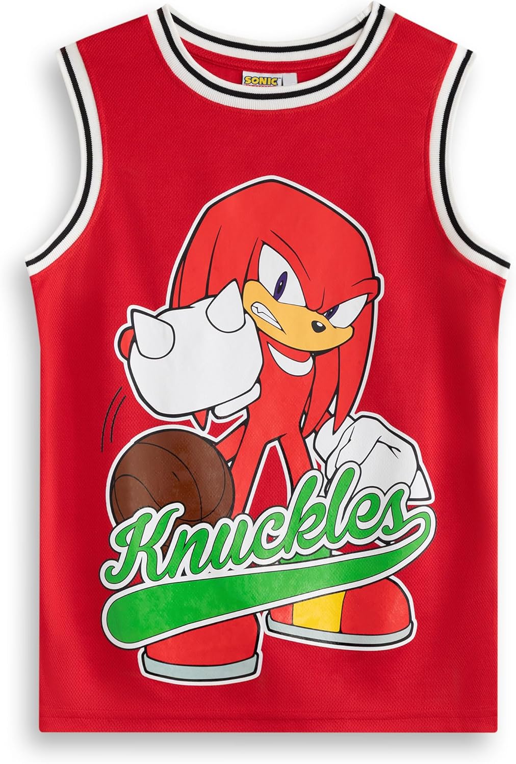 Introducing the Sonic the Hedgehog Knuckles Red 2 Piece Basketball Set, the perfect choice for kids who are ready to take their playtime to the courts. This dynamic sports outfit features Knuckles, a favourite character from the Sonic universe, making it an exciting addition to any child's activewear collection. Crafted from 100% polyester, this basketball set ensures durability and comfort during sports activities. Designed for both boys and girls, this unisex kids' basketball gear includes a sleeveless top and matching shorts, ensuring freedom of movement for spirited play. The crew neck style provides a classic fit that is easy to wear and appropriate for various sporting activities. The eye-catching red colour prominently showcases the character Knuckles, resonating with young fans while maintaining a modern cartoon theme suitable for today’s active youth. This 2 piece set is ideal for basketball practice, outdoor games, or casual playdates, allowing kids to channel their inner speedster. The breathable material makes it comfortable for all-day wear, whether they're shooting hoops or running around with friends. With Knuckles underscoring the set, kids can embody the spirit of the beloved franchise and shout “Gotta go fast!” as they engage in their sports routine. The design focuses on utility and functionality, making it practical for any sports setting. The pullover style adds to the ease of getting dressed, allowing children to get ready and head out in no time. This basketball set is not only about play; it's about embracing a lifestyle of activity and fun while showcasing love for the Sonic franchise. Encourage a love for sports with the Sonic the Hedgehog Knuckles Red 2 Piece Basketball Set, a must-have for any active child looking to enjoy time on the court. Whether it’s for practise or play, kids will appreciate the comfort and style of this performance-focused outfit.
