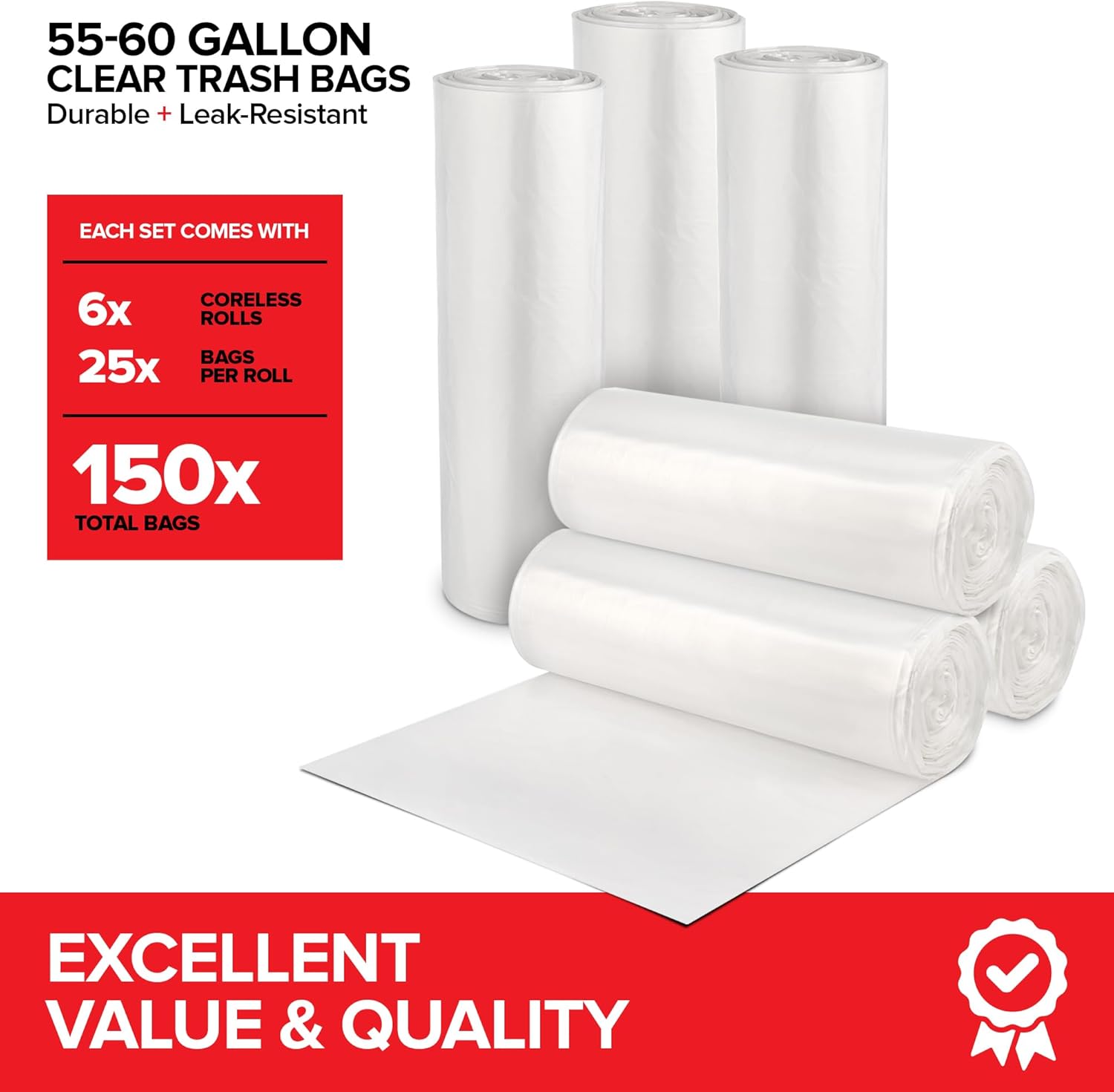 Made of high density resin material, our clear plastic trash bags are strong and durable. The crystal clear design makes it easy to identify contents for recycling. Our coreless rolls are a more sustainable choice than bags with cardboard cores. *Not suitable for sharp objects or trash bins with sharp edges. With a capacity of 2 gallons (8 quarts) and a 6 micron thickness, our clear waste bags are perfect for small waste bins and cleaning up trivial messes. Our mini garbage bags are also temperature resistant between -40 to 212 degrees Fahrenheit - making them an ideal choice for produce sections in supermarkets, grocery stores and delis. The star seal on the bottom of our bags ensures that there are no leaks and spills, making it much easier to carry messy waste to the trash can. Our leak-resistant plastic bags also protect your waste bin from liquids, keeping it nice and clean. Perfect for restrooms, offices, restaurants, hotels, amusement parks, public parks, schools, cafeterias, and more!