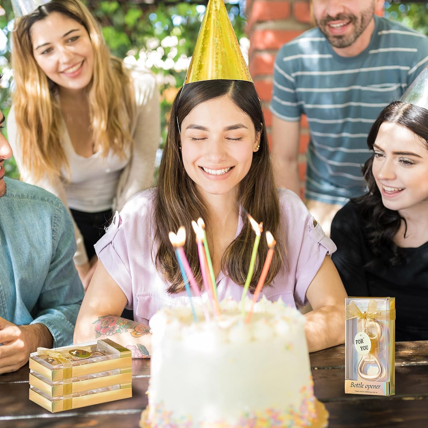 Features: Effortless to clean: Simply washing our 15 quinceanera gifts bottle openers with clean water is enough for the cleaning work, hence, they can release your burden of doing housework. Nice gifts: These 15th party decorations bottle openers are delightful gifts for your loved ones, pals, family, coworkers, and other individuals with whom you are intimate, leaving a lasting impression and making your 15th birthday party unforgettable. Specifications: Material: zinc alloyColor: goldSize: Bottle opener: about 3.35 x 1.42 inches/ 8.5 x 3.6 cm (L x W)Gift box: about 4.61 x 2.36 inches/ 11.7 x 6 cm (L x W)Package includes: 36 x Bottle openers with gift boxesNotes: Manual measurement, please allow slight errors on size. The color may exist a slight difference due to different screen displays.