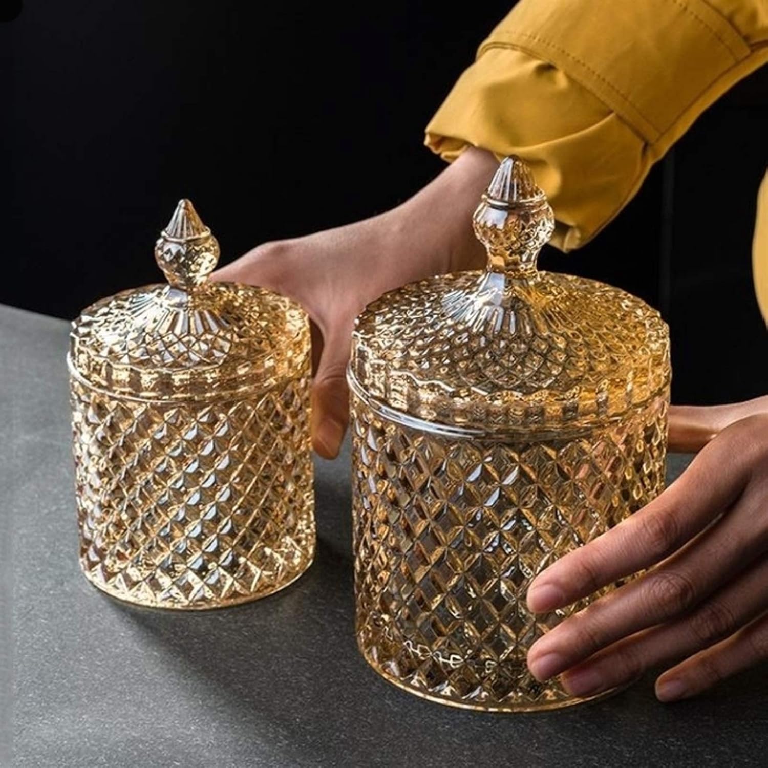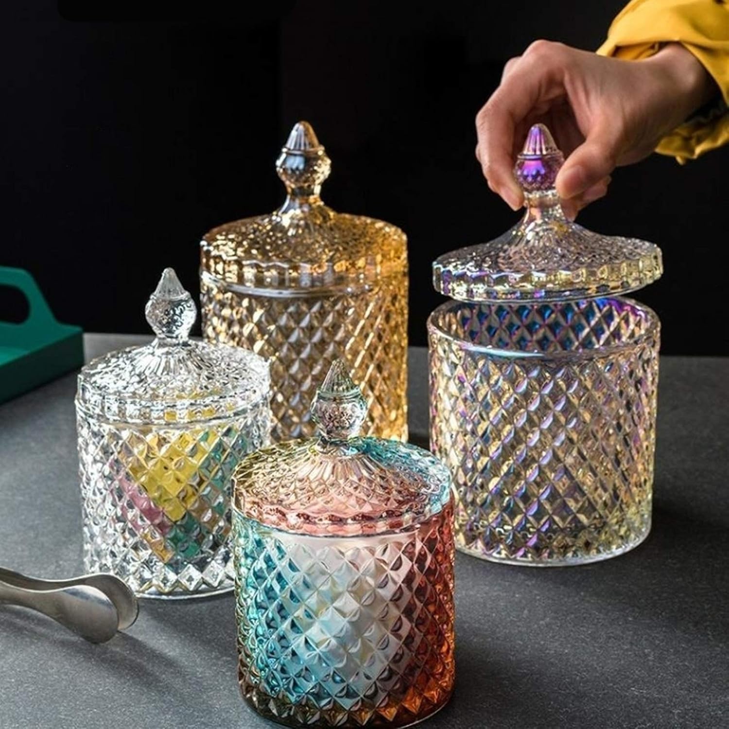 Name: Sugar BowlMaterial: glassUses: decoration, gift, householdSize: diameter 8.5, height 13 (cm); diameter 3.3, height 5.1 (inch)Weight: 1000/1500gprompt:1. Please check the size before buying. Due to manual measurement, there will be an error of about 0-3 cm, please understand2. There are no other items except the product in the product photo3. Please note that due to different monitors, there may be slight color differences, please understand.4. The above data is for reference only. The size is measured manually. Each variable may be different. Please refer to the actual product. Thank you.5. If you find any problems with our products, please feel free to contact us via email, we will solve the problem as soon as possible.6. Welcome your sharing and feedback, so that we can provide you with better products and services.This cute sugar bowl is sure to be ideal for limited counter space and a great companion for your everyday coffee.