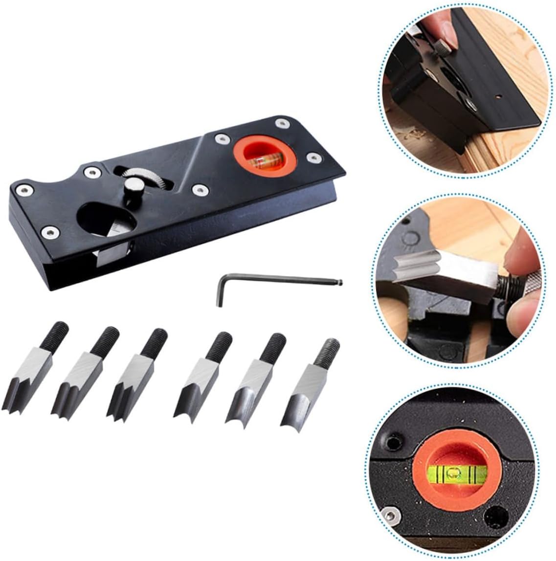 Package Include 1 x chamfer plane 1 x flat cutter 6 x cutter head accessories Features - Material: Aluminum alloy, ABS, Carbon steel Plane Tool - Color: Black Woodworking Chamfer Plane - Size: About 15.40X4.90X2.00cm/6.05X1.93X0.79in Manual Wood Planing Tool - The chamfer plane is made of material, which is sharper and more durable Hand Planing Cutter. - The compact size fits anywhere without taking up the entire surface, making your table look stylish and chic Chamfer Plane. - It comes with a gradienter, which helps you find a precise angle to plane the wood Manual Chamfer Plane. - The contoured handle can be comfortably held in the hand, making the planer easy to hold and control Woodworking Trimming Tool. - Hand planer is designed for cutting, planing and trimming woodworking surfaces Wood Planing Tool.Goods InformationManual Chamfer Plane This chamfer plane is a tough little tool that can a larger wood planer.Woodworking Chamfer Plane Specially designed for the wood trimming ad planing.Plane Tool It comes with a gradienter, which helps you find a precise angle to plane the wood.Wood Planing Tool It’s for use in crafts, hobbies, and model-making projects of all kinds