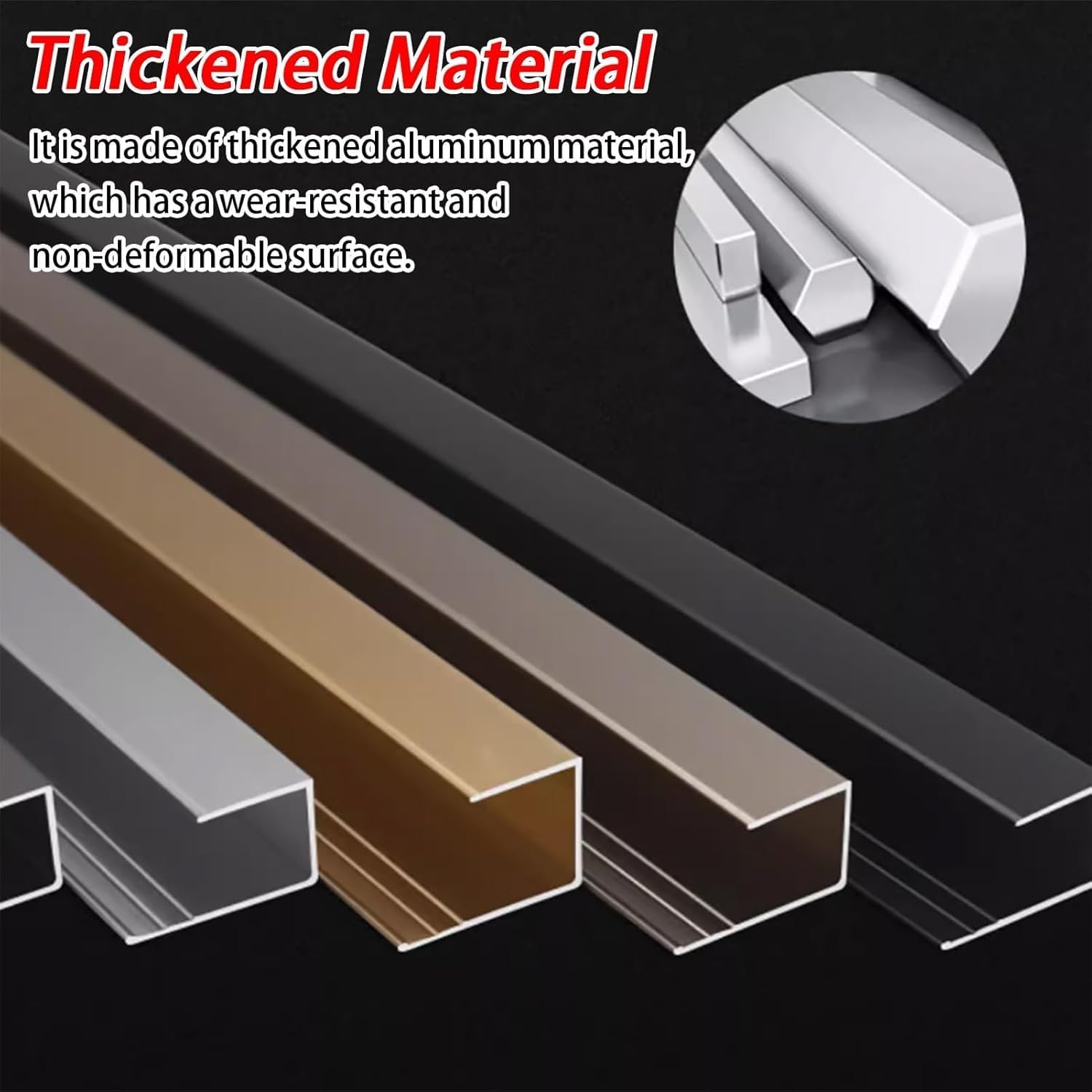 Our edge reducer cover adapt to different décor styles, connecting floor gaps to protect you and your family!Packing List: - 1x Transition StripSpecifications: - Material: Aluminum Alloy- Inner Diameter Height: 18 mm (3/4")- Length: 90 cm (35 3/8")- Surface Width: 20 mm (3/4")- Thickness: 1 mmFunction: - Metal material, and long-lasting.- C-shaped design, smooth transition.- Cover floor gaps more tightly.- Threshold bar prevents tripping or falling.- Easy to cut, install, clean and maintain.Please Note:- Due to the light and screen difference, the item's color may be slightly different from the pictures.- There may be slightly deviation in dimensions due to manual measurement. Thank you for your understanding.