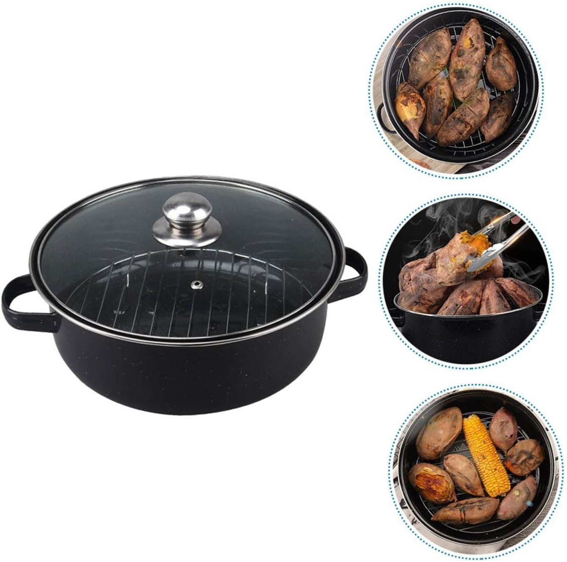 Package List 1 x pot with lid Features -Material:Glass, iron -Size:32.00X28.00X14.00cm/12.58X11.00X5.50in -Color:Black -Product Info:Baked sweet potatoes in the oven - Widely applied in home, food store, restaurant, camping and other places in need multi-function roaster. - The special design can keep food from rolling and sliding with a delicate and practical design convenient roaster. - Cooking Pot can withstand high temperature, which is not easy to deform and break roasting pan. - The ergonomic double handles is more convenient to move and use, safe and secure, very practical covered roaster. - Can be used for roasting much food, such as potatoes, corns, sweet potatoes, chicken wing, Chinese chestnut, etc roasting pot.Goods Informationstainless steel turkey roaster pan Smooth surface for easier to clean and wash.roasting tin with handles It can be used to bake sweet potato, corn and so on.daily use roasting pan It can withstand high temperatures, which can be used for a long time.roasting pans Do you want to have a multi-functional Cooking Pot? If so, our covered roaster is carefully prepared for you