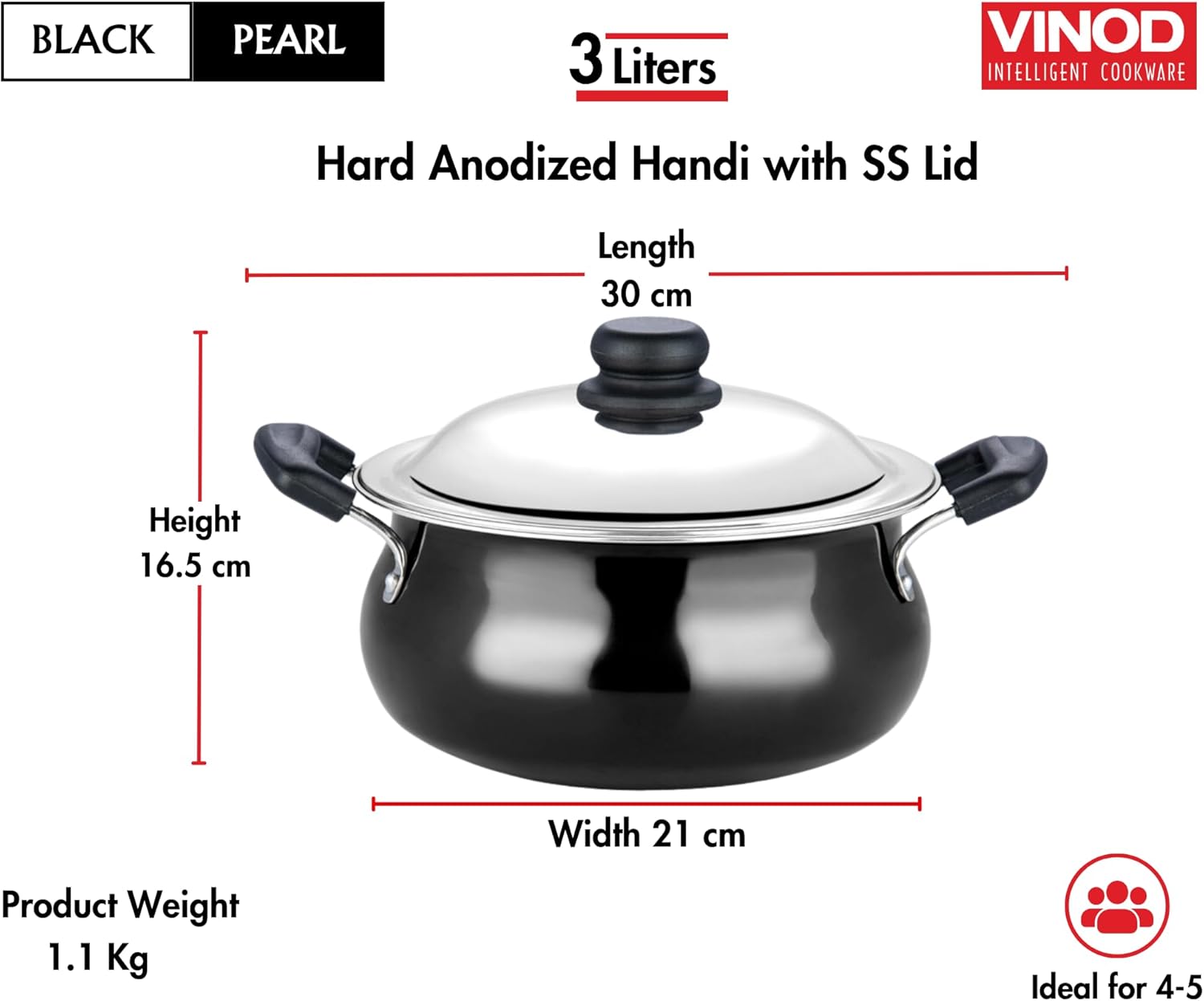 Vinod Cookware Hard Anodised Junior Handi With Lid Black 3 Litres