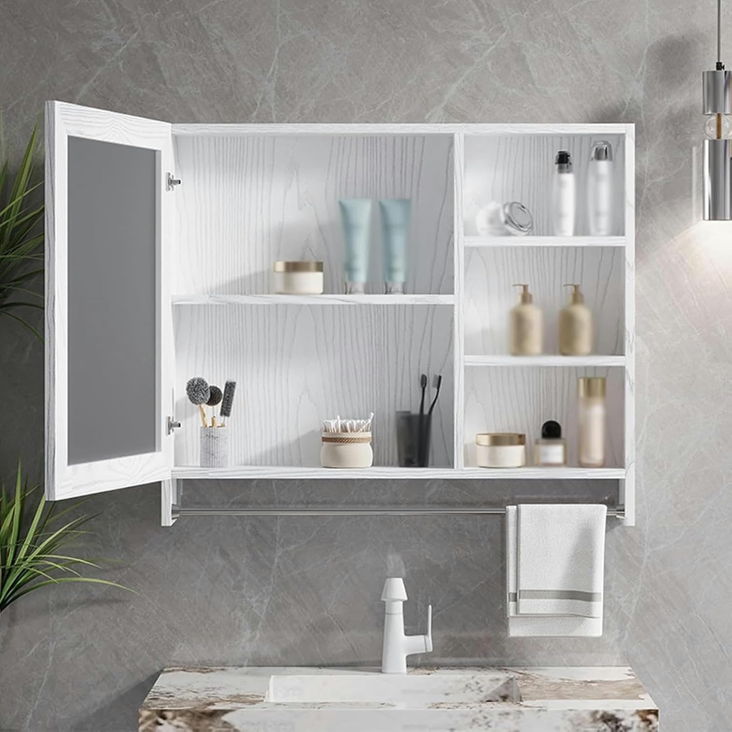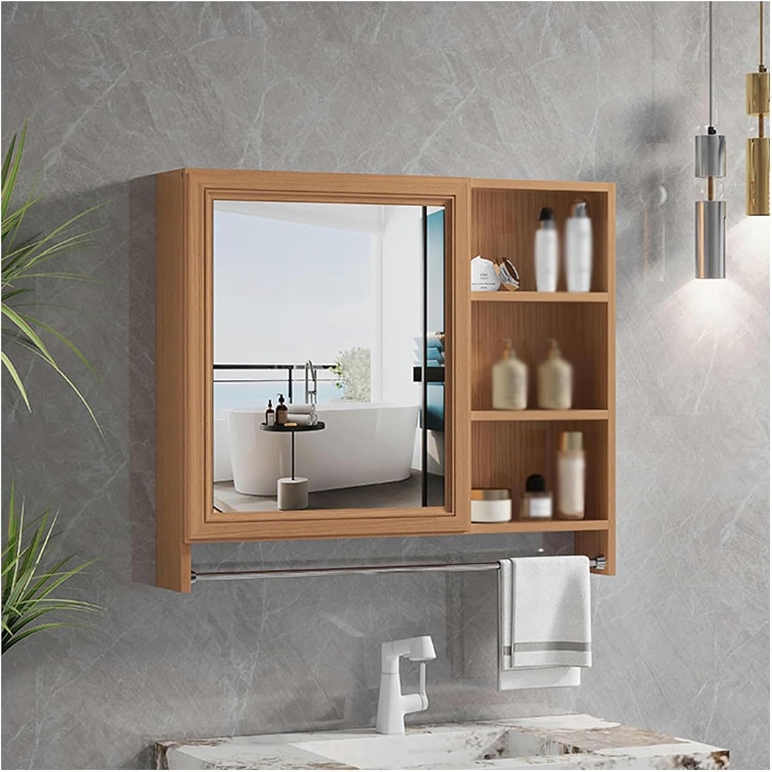 Fix this bathroom mirror cabinet to the wall to save space and not take up valuable floor space. It can be use over the sink or toilet.No fear of water, no rust, no cracking. Enjoy living and create a mirror cabinet with value and strength.Product Name: Wall Mounted Square Bathroom Mirror CabinetLens material: high-definition mirrorStyle: Simple fashionShape: squareProduct color: a variety of colorsSize:60 centimetre(23.6")70 centimetre(27.6")Product list: bathroom mirror cabinet x1, installation accessories (excluding other items in the picture)Attention Tips:1.The products are hand-measured, size error 1-3centimetre error, please understand.2.Product pictures are all physical photos, but due to shooting technology, monitor parameters and other factors, there may be a slight color difference, please understand.