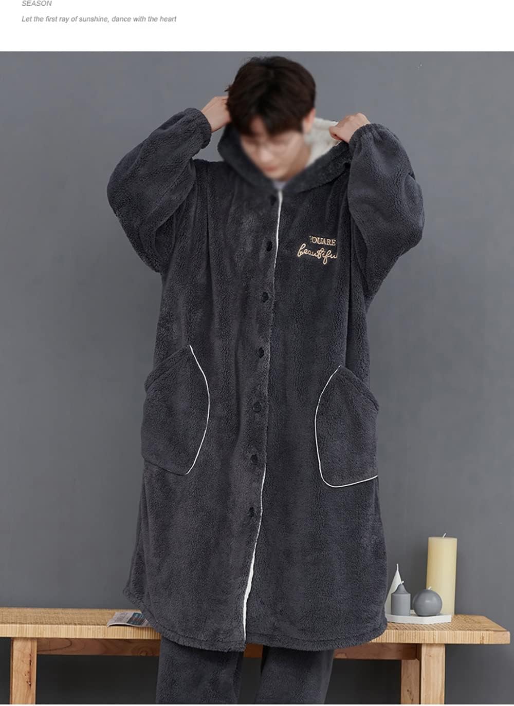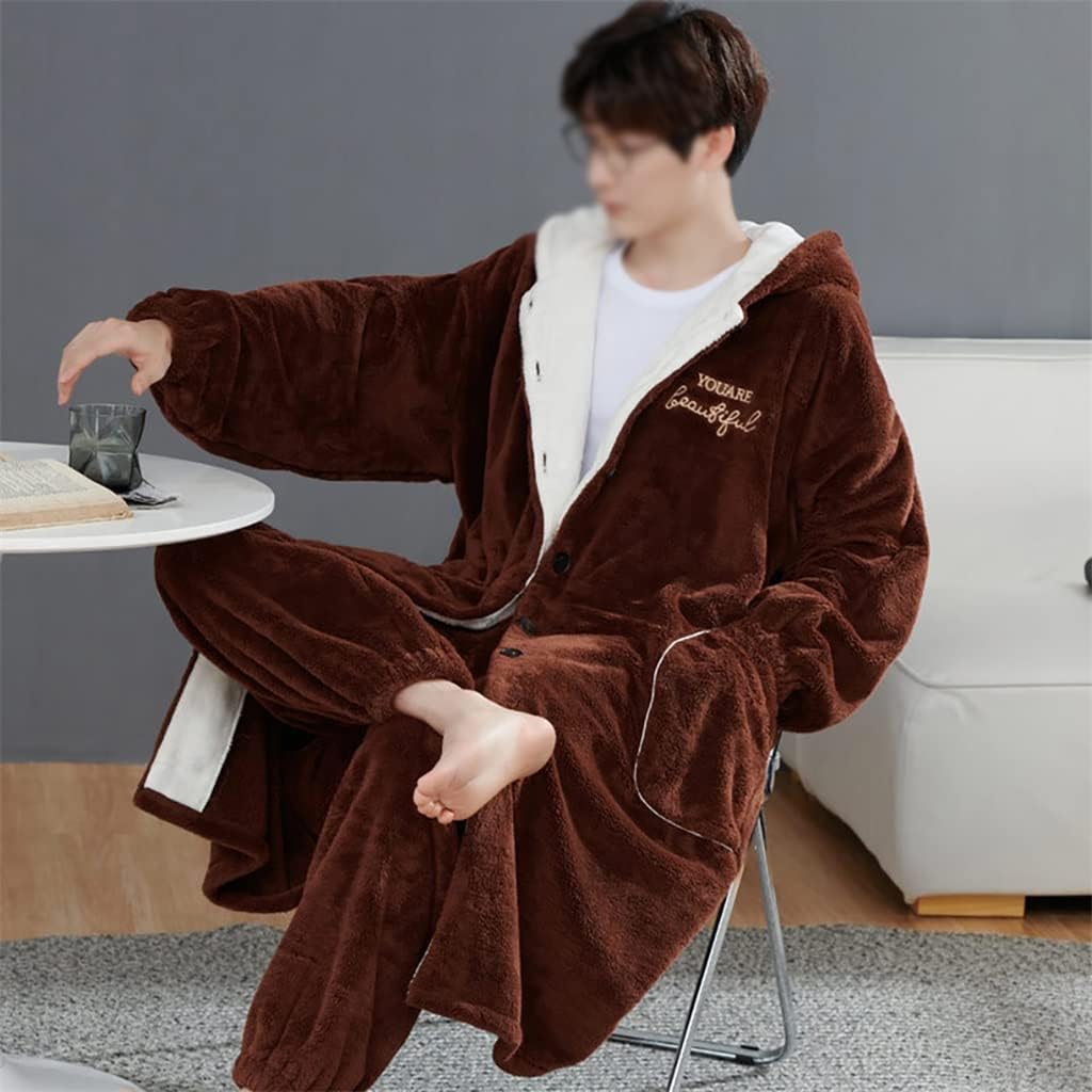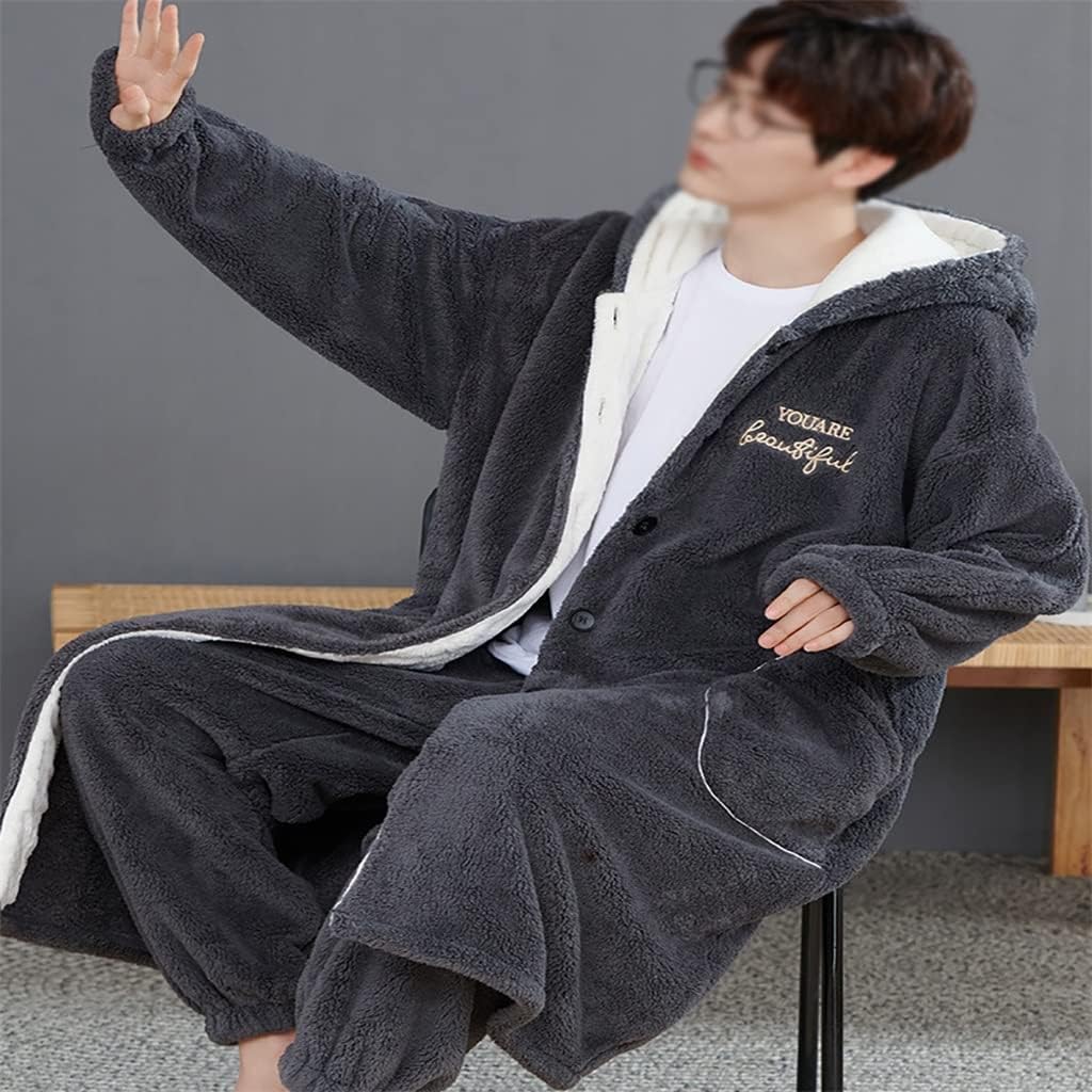 Hooded design, warm and comfortable.The version is loose and comfortable, with high tolerance, skin-friendly and soft to the touch.Relax and indulge yourself at home. The home can be so casual without losing the trend and comfort and no longer monotonous.Casual and loose, comfortable and soft to wear.Warm thick , warm and velvety, not easy to fade.Material: FlannelCollar: HoodedApplicable category:MenFor the season: spring,Winter, autumn.Occasion: Home Wear ,Sleepwear,Nightgown.Parcel Include: 1PC mens robesNotice:1.due to manual measurement,please allow 1-3cm difference,thanks.2.Color may little vary due to different display setting.3.Please check the Size Chart before you place an order. If you have any questions, please feel free to us.