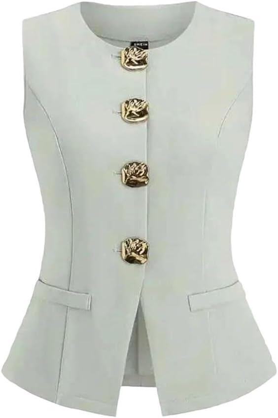 Women's Sleeveless Vest – the perfect blend of elegance and functionality for your professional and casual wardrobe. This blazer vest features a slim fit design with versatile necklines like V-neck and crewneck, crafted for all-day comfort and style.Ideal for office wear and business casual occasions, this waistcoat offers a polished look with details such as notched lapels, button-front closures, and breathable fabrics. Use it as a layering piece over blouses or as a standalone formal vest for meetings, conferences, or evening events.Sleeveless Design: Lightweight and comfortable for year-round wear, from spring to autumn.Professional Attire: Enhances your work uniform with a tailored silhouette that flatters every body type.Versatile Styling: Pairs effortlessly with pants, skirts, or dresses for a chic career wear or daily outfit.High-Quality Materials: Durable and easy to care for, ensuring long-lasting use in any setting.Whether for formal occasions, commuting, or casual outings, this women's suit vest adds a touch of sophistication to any ensemble. Explore our collection for elegant vests that combine fashion with practicality, designed to elevate your wardrobe essentials.
