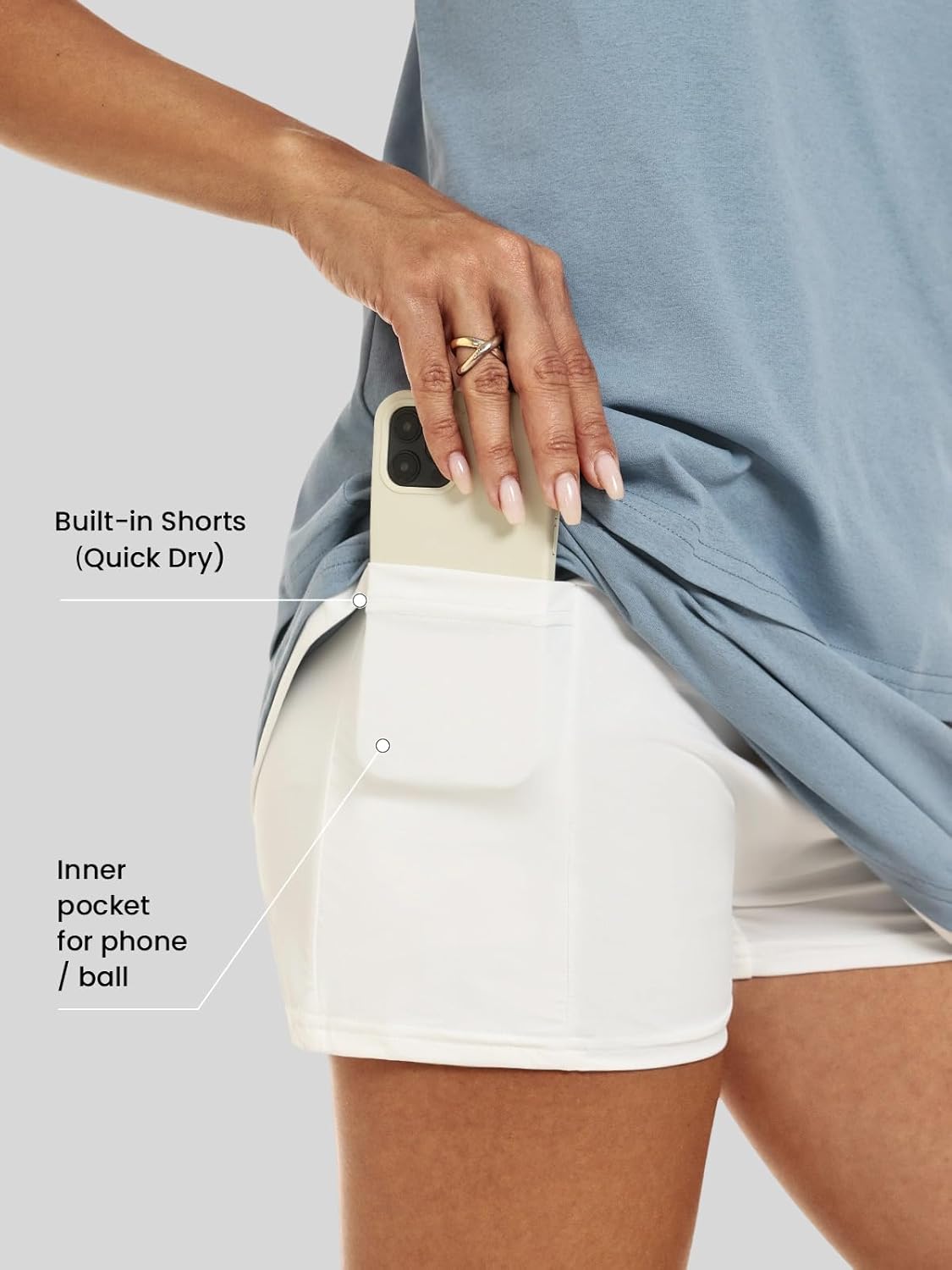 | Fabric Type | 100% Polyester; built-in shorts: 86% Nylon, 14% Spandex |